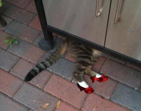 Thank you so much, Journey! I saw this pic on Tumblr, so the red shoes aren’t mine. Although I could have pulled this off because I do have some ruby slipper ornaments. lol I am glad the kitty didn’t get squished by the house, too. LOLOL