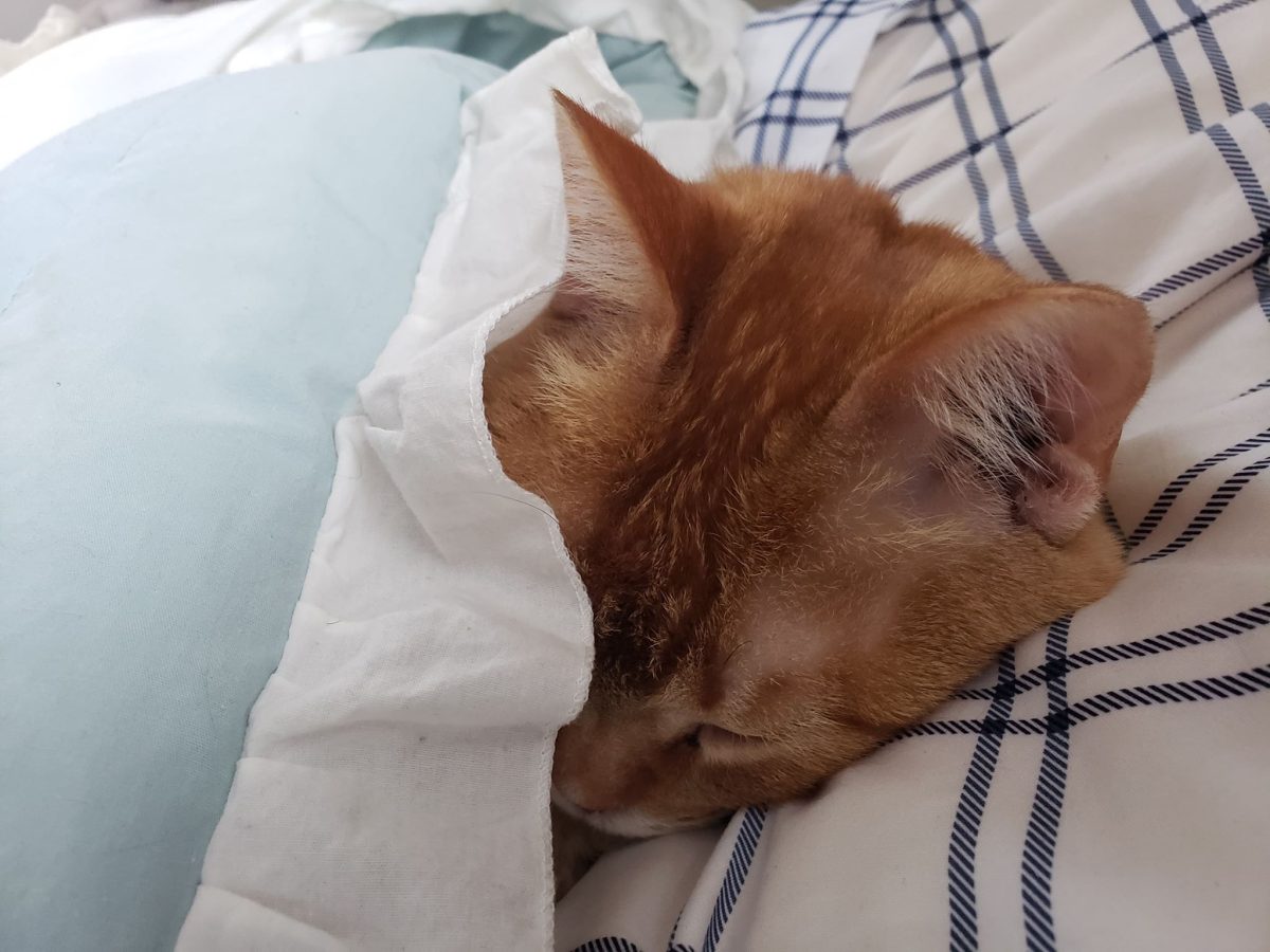 Cesare, sleeping next to me. He was my sweetie-boy.
